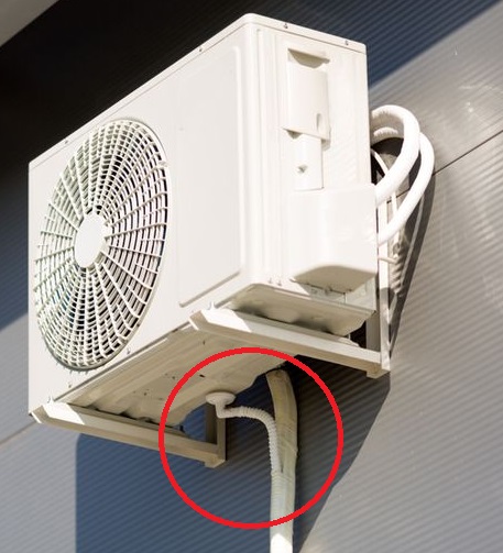 Cuando el aire acondicionado está en modo frío, extrae la humedad del ambiente para enfriar el aire. Esa humedad se condensa dentro del equipo y sale por un pequeño caño de desagüe en forma de gotas.